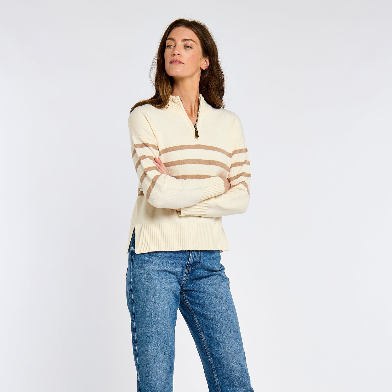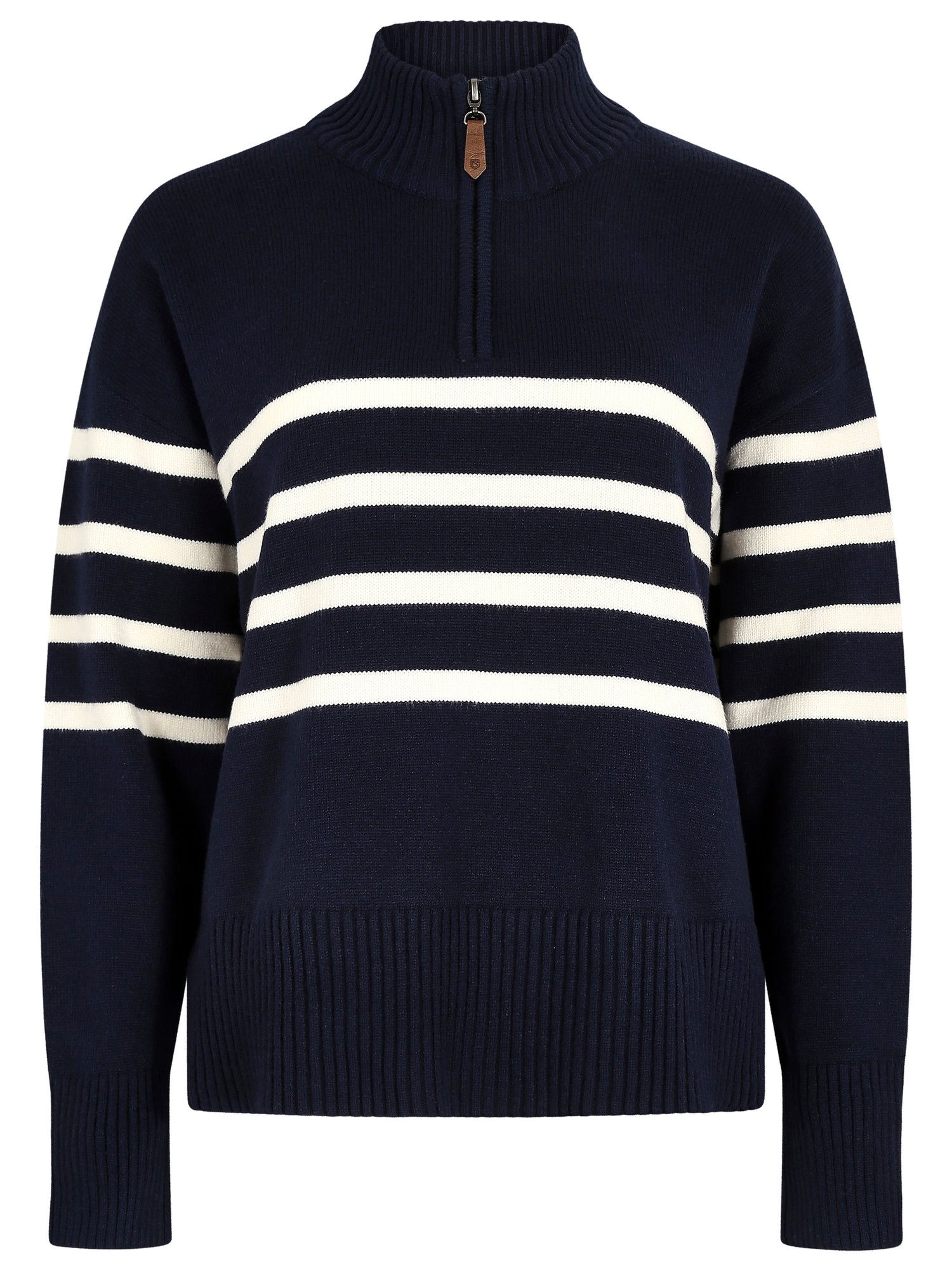 The Dubarry Fonthtill sweater is lightweight and wonderfully soft, made with a combination yarn designed to be soft to the touch, hold its shape well and be machine washable. The crisp contrasting stripes have a distinct nautical feel, very at home by the sea, but bring a fresh spring touch wherever you take it. The ribbed collar can be zipped up or down giving you a light spring layer that’s also cosy on cooler spring evenings.