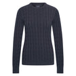 Experience elegance and style with HV Polo's Tally Pullover. Crafted from soft luxury cotton, this pullover features feminine shaping, fashionable colors, and a sophisticated cable pattern. Rib-knitted round-neck, cuffs, and hem provide a comfortable and flattering fit. Complete with horse logo embroidery and metal coin detail, this pullover is both chic and cozy.