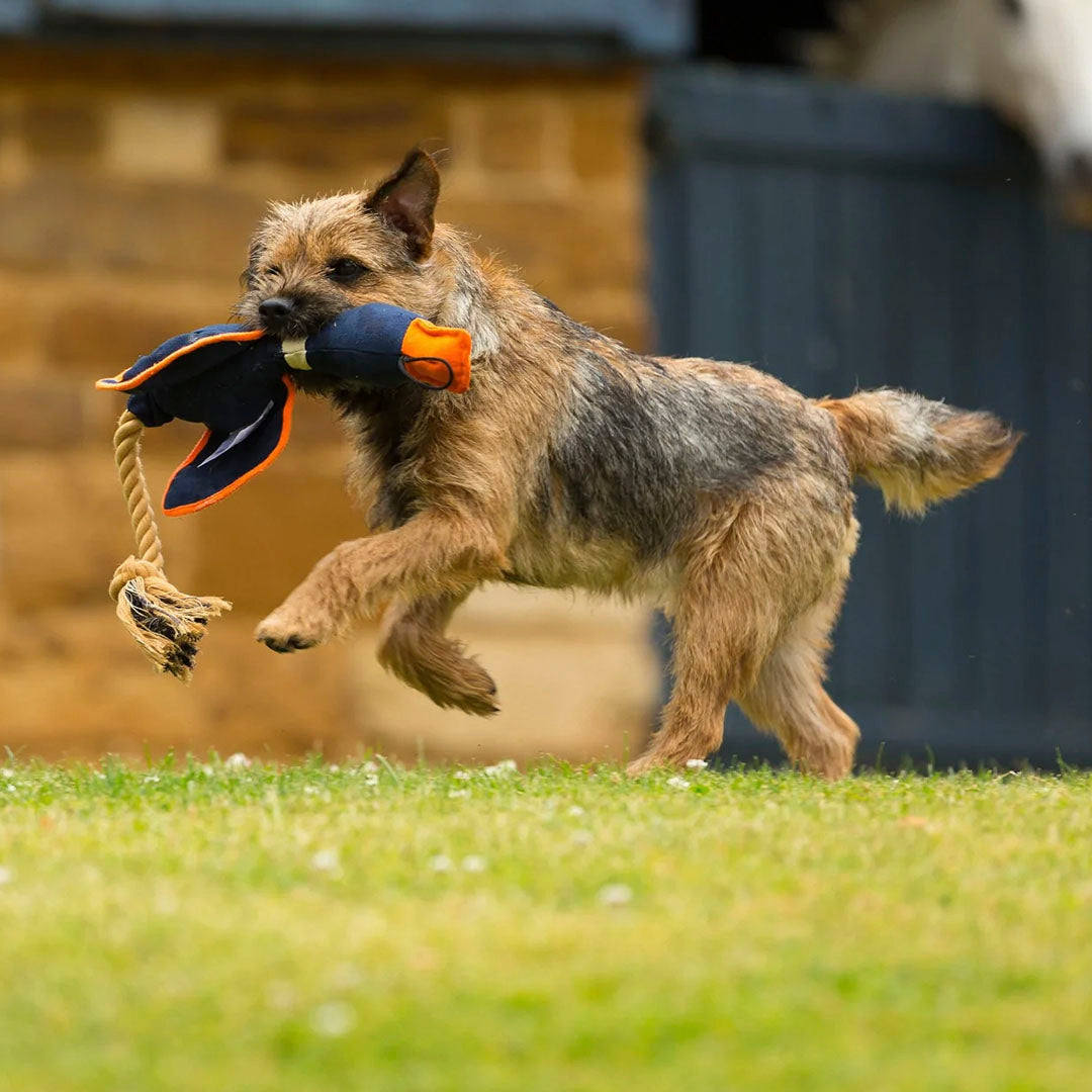 Le lanceur de canard avec ailes House of Paws est un canard en toile amusant avec une queue en corde, idéal à lancer pour votre chien et à jouer à rapporter.