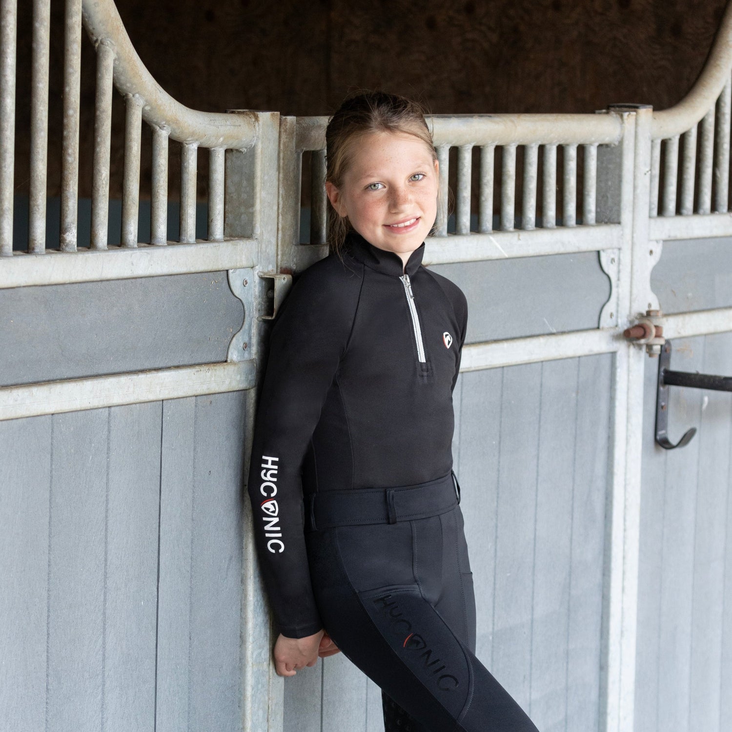 Create a statement style with the HYCONIC Base Layer. Made from a breathable black mesh fabric for optimum airflow perfect for the active equestrian. With a flattering ¼ zip for a smart and practical finish and a white and tonal gloss silicone HYCONIC by Hy Equestrian logo and emblem for an iconic look.