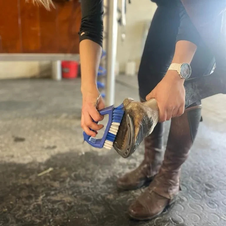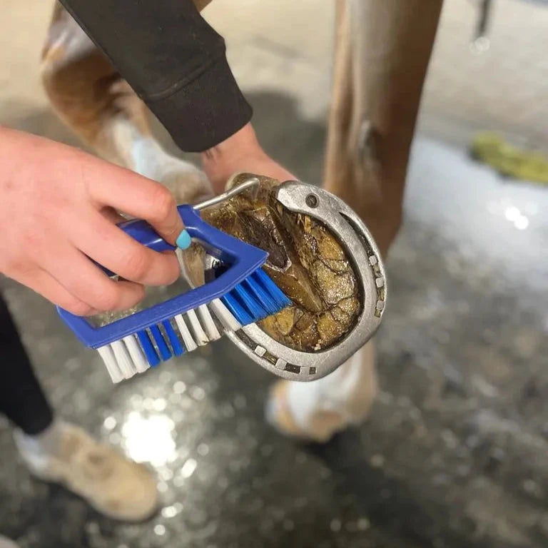 The Pickbrush is a robust hard-wearing hoof and boot-cleaning tool. It can uniquely clean out the bottom of the horse's foot or rider's boot with a single action of the operator's hand. The hard-wearing stainless steel pick and heavy-duty brush will provide several years of use.
