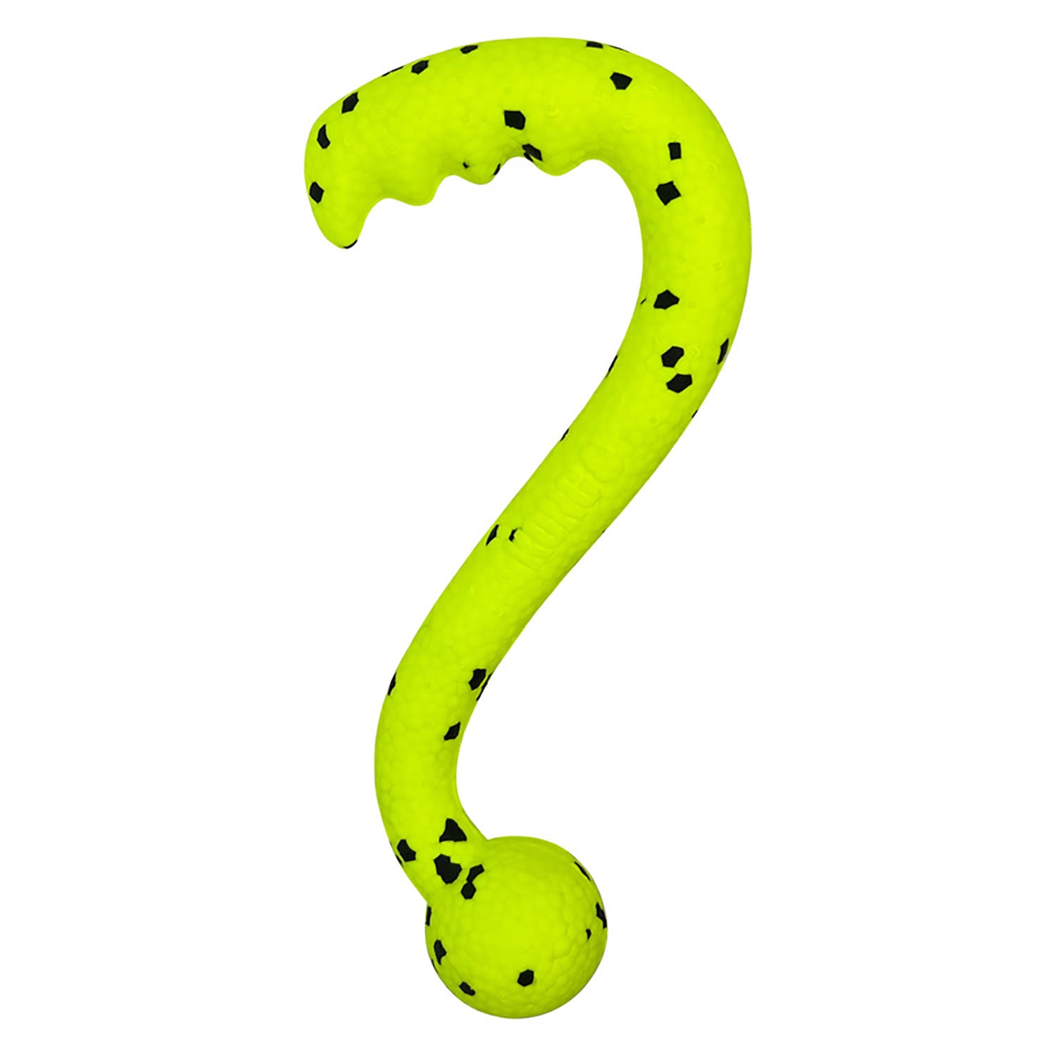 This toy's durable, flexible bounce comes from the same cutting-edge material as elite running shoe soles, so rugged it's guaranteed to last through tough tugging and fetching. Bite-defying self-healing properties repair toothmarks for long lasting, instinct-satisfying interactive fun. A tugging handle on one end and a ball shape on the other end allow for carrying, tugging, fetching, and biting for gentle to heavy chewers. This toy's lightweight material floats for water play and stands up to the elements for seasons of action.