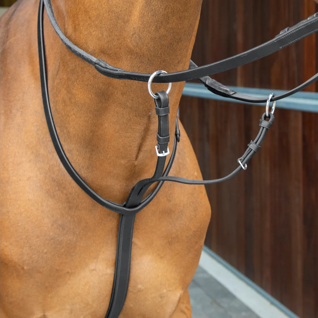 La Shires Lusso Running Martingale offre un soutien avec élégance. La section centrale de la poitrine offre un confort supplémentaire grâce à sa doublure en cuir doux et rembourré. Les clips se fixent rapidement aux anneaux en D de la selle pour une fixation rapide, un réglage à boucle unique au niveau de la bandoulière et à tous les autres points de fixation.