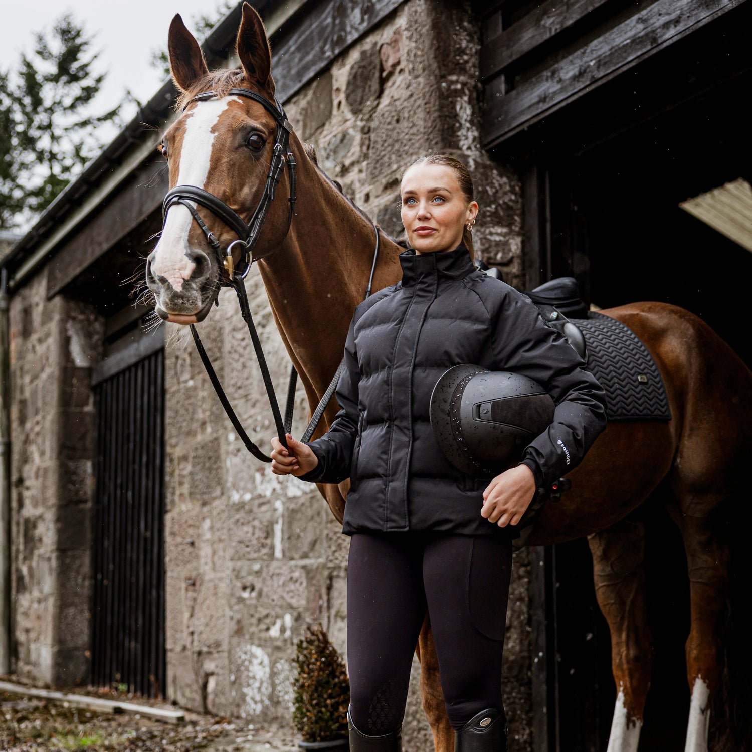Combining warmth, weatherproofing, and style, the EQUIDRY Talia Jacket is the perfect short puffer for riding, yard work, or outdoor adventures.