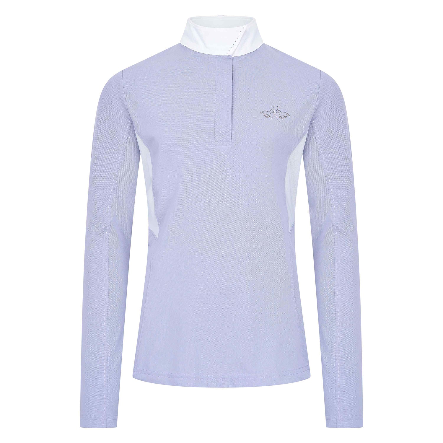 Designed for young equestrians, the HV Polo Laura Children's Competition Shirt elevates performance and style. The mesh top features a half placket with blind zippers for a sleek look, while the collarstand dazzles with rhinestone detail. The breast logo adds a touch of sparkle with stones and print.