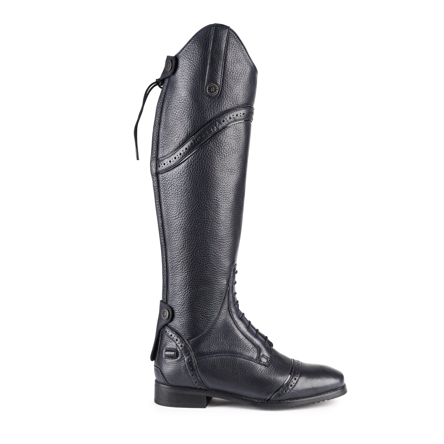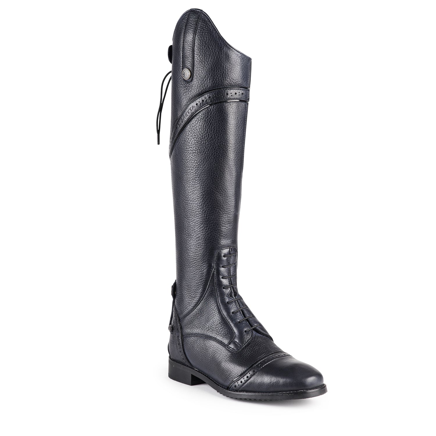 The Shires Moretta Constantina Riding Boots are a fine quality long riding boots with premium fit and mock laces. Moretta Constantina riding boots are crafted from full grain leather which is soft to touch. Full leather linings. Mock lace detail with stretch panels for a bespoke fit . Rear YKK zips. Leather grip spur rests. ActiveFlex insoles with Impact Support System. Moretta composite riding soles for optimum grip. Steel shanks.