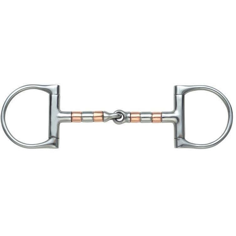 The Shires Copper Roller Mouth D Ring Snaffle is a single jointed snaffle featuring copper rollers on the mouthpiece which encourage mouthing and improve salivation. The rollers can also help to prevent the horse from taking a hold on the bit or leaning.