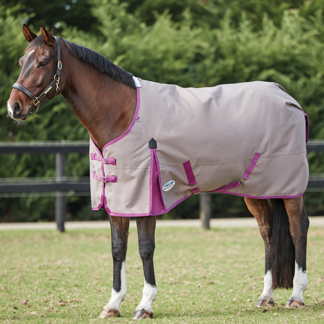 Strong, classic style at a great price. The WeatherBeeta ComFiTec Essential Standard Neck Lite features a strong and durable 1200 denier ripstop outer shell with repel shell coating that is both waterproof and breathable with 0g of polyfill. Featuring a smooth 210T polyester lining, traditional shoulder gussets for natural movement, twin chest buckles, twin low cross surcingles, adjustable leg straps, and a standard tail flap. 100% boa fleece at the wither and 3 D-rings to allow for attachment of neck rugs (neck rug sold separately). Hydrostatic pressure tested to 2000mm plus. Moisture vapour tested to 3000g/m2 plus. 3 year warranty on hardware, waterproofness and breathability on turnouts.
